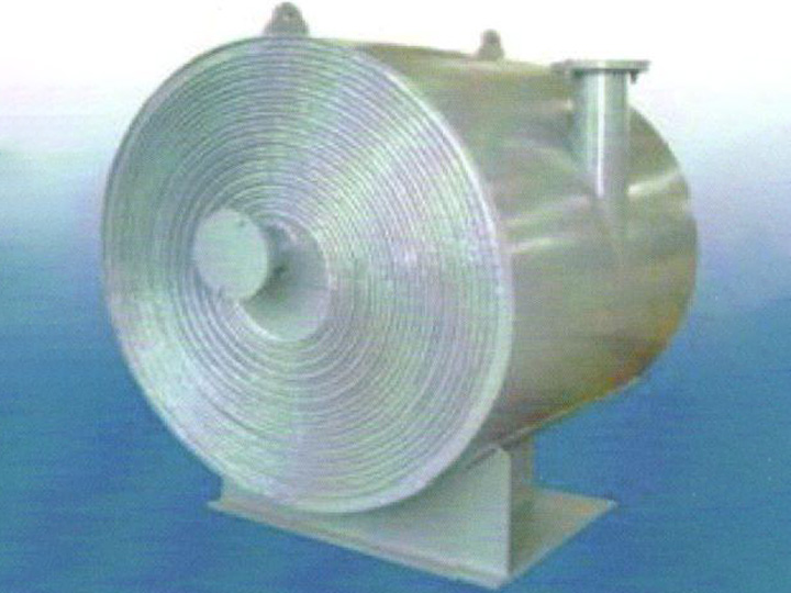 2、在殼體上的接管采用切向結(jié)構(gòu),局部阻力小,由于螺旋通道的曲率是均勻的,液體在設(shè)備內(nèi)流動沒有大的轉(zhuǎn)向,總的阻力小,因而可提高設(shè)計流速使之具備較高的傳熱能力。